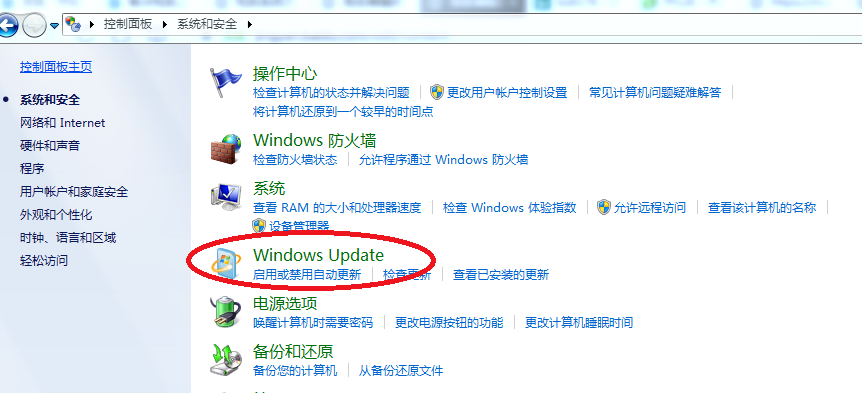 3、点击”Windows Update"。
