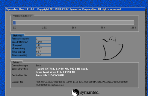5,系统就开始备份了。备份完了,软件会再次自动重启,进入系统。如图下所示;