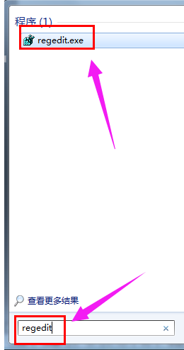 打开开始菜单,在搜索栏内输入输入regedit,点击regedit.exe即可打开注册表。