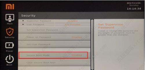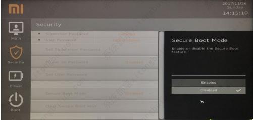 2、然后选择Secure Boot Mode,将Enabled改成Disabled,关闭安全启动;