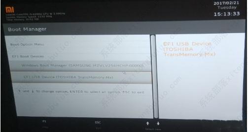 4、按F10保存重启,重启过程中按F12,调出Boot Manager启动项菜单,选择EIF USB Device回车即可进入U盘启动盘。