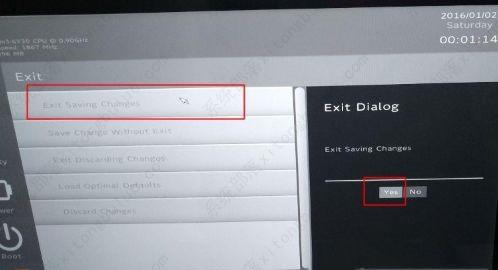 3、按F10保存重启,或者在Exit,选择Exit Saving Changes,点击Yes,重启;