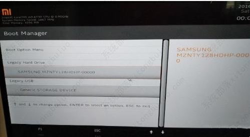 4、重启过程中按F12调出启动菜单,这时候显示的是legacy模式的usb启动项,选择usb设备回车即可。