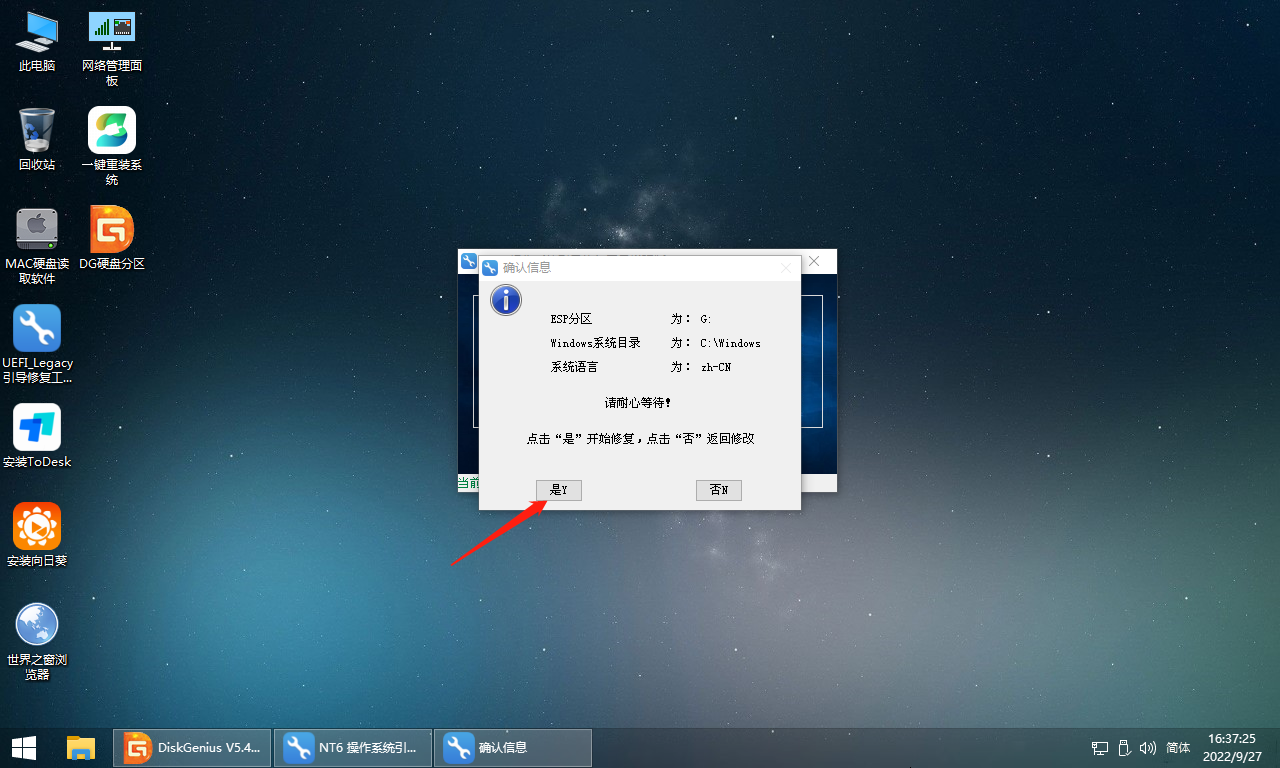 第四步:查看引导修复工具界面引导盘符是否对应“ESP”盘符。