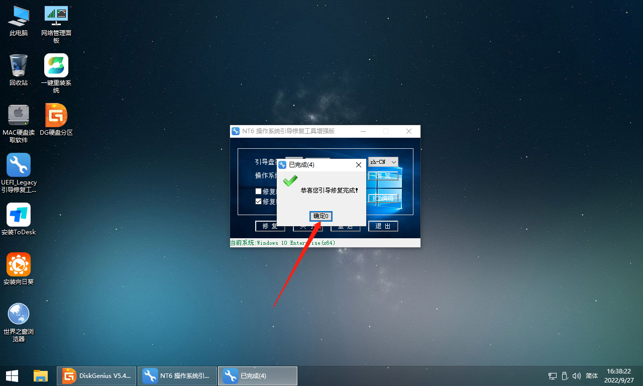 第七步:提示修复完成点击“确定”。