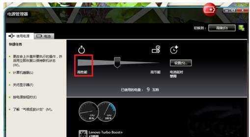 在电源管理中把电源设置为高性能模式。