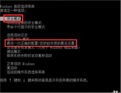 对于这样的问题比较无解,我们可以尝试在开机的过程中按F8进入高级选项菜单,选择安全模式或者最后依次正确的配置进入系统。