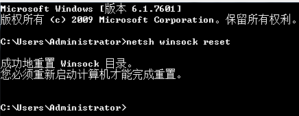 然后在命令提示符窗口中输入netsh winsock reset命令,重置winsock目录,再次尝试远程桌面连接看看还会不会出现远程桌面连接失败的问题。