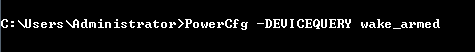 首先打开命令提示符窗口,输入命令PowerCfg -DEVICEQUERY wake_armed。