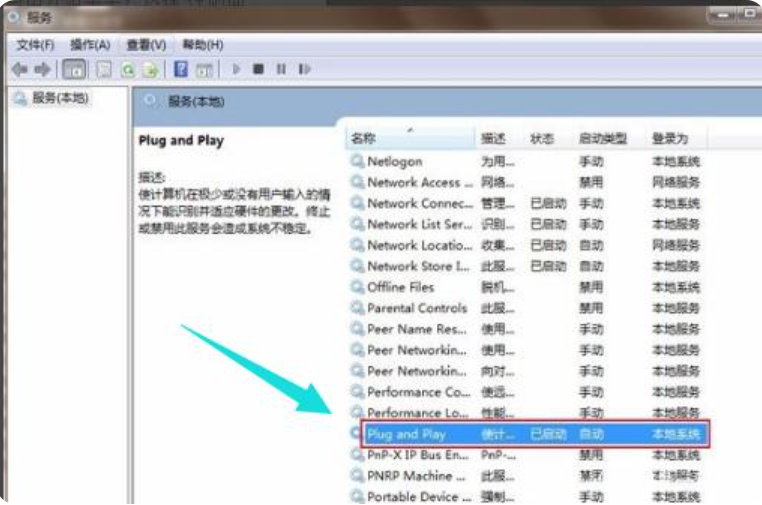 4、弹出服务窗口中的即插即用(即插即用)。