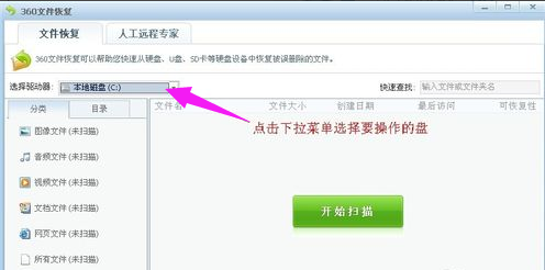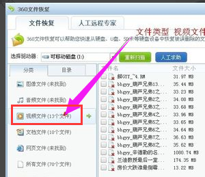 选择要扫描的盘符:这里以可移动磁盘作说明:
