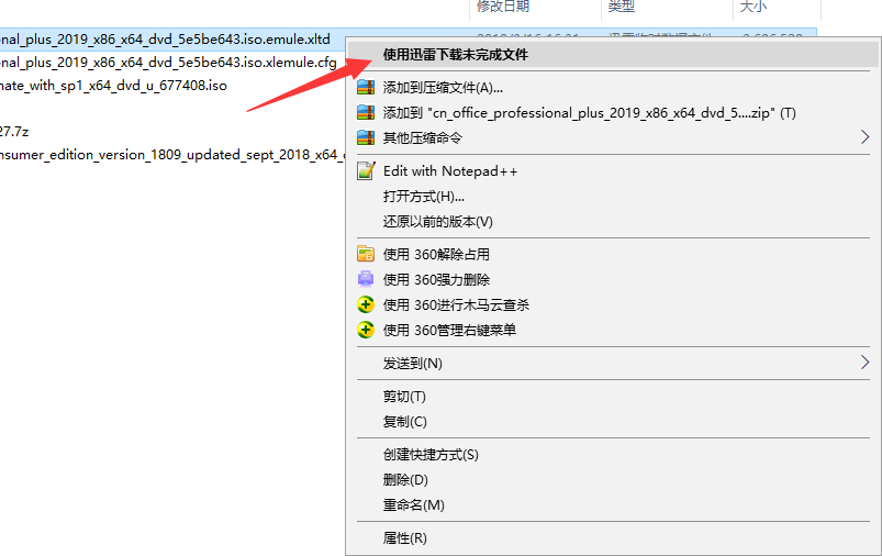 2、找到需要打开的tdl文件,鼠标右键该文件,选择使用迅雷下载未完成文件即可。