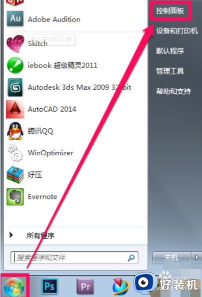 1.打开左下角处开始菜单选项,随后选择控制面板进入。