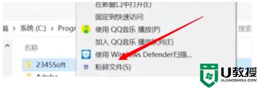 3、选择右边菜单上的删除,或者粉碎文件的选项。