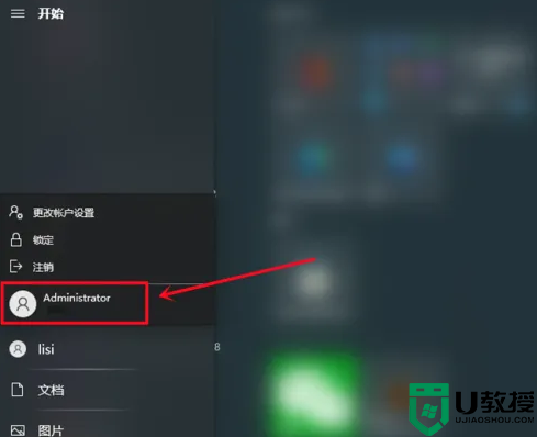 5、最后点击电脑左下角开始,选择用户Administrator进行登录,根据系统重新设置完成即可获得win10权限。