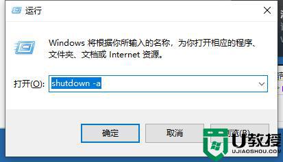 5、假如我们中途又不想在设定的时间关机了,那么依旧打开运行窗口,将命令更改为“shutdown -a”,我们会看到桌面右下角弹出了取消关机的提示。