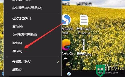1、另外我们可以使用命令打开记事本,右键点击桌面左下角的开始按钮,在弹出菜单中点击“运行”菜单项。