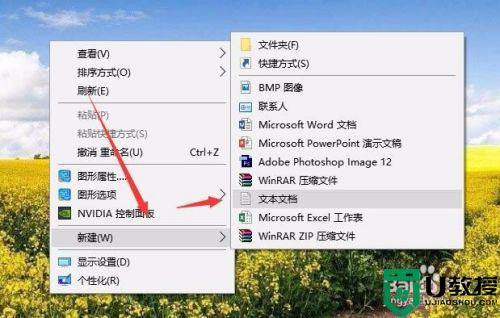 1、我们也可以在Windows10桌面的空白位置点击右键,在弹出菜单中依次点击“新建/文本文档”菜单项。