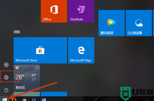 1、首先需要将电脑系统更新至最权新版本的win10,点击电脑左下角的菜单按钮,然后选择点击设置按钮。