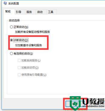 8、在“系统设置”界面中,切换到“常规”选项卡,勾选“诊断启动”项,点击“确定”按钮,重启一下计算机。