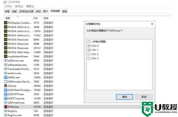 4、在【详细信息】里找到RDR2.exe,右键后选择【设置相关性】;