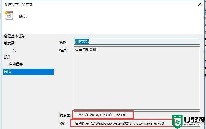 8、最后查看下设置好的内容,确定的话点击“完成”,我们的系统就会在设定的时间完成关机。
