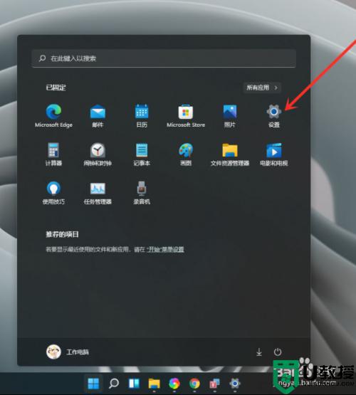 1、打开win11开始菜单,点击【设置】,打开win11设置界面。