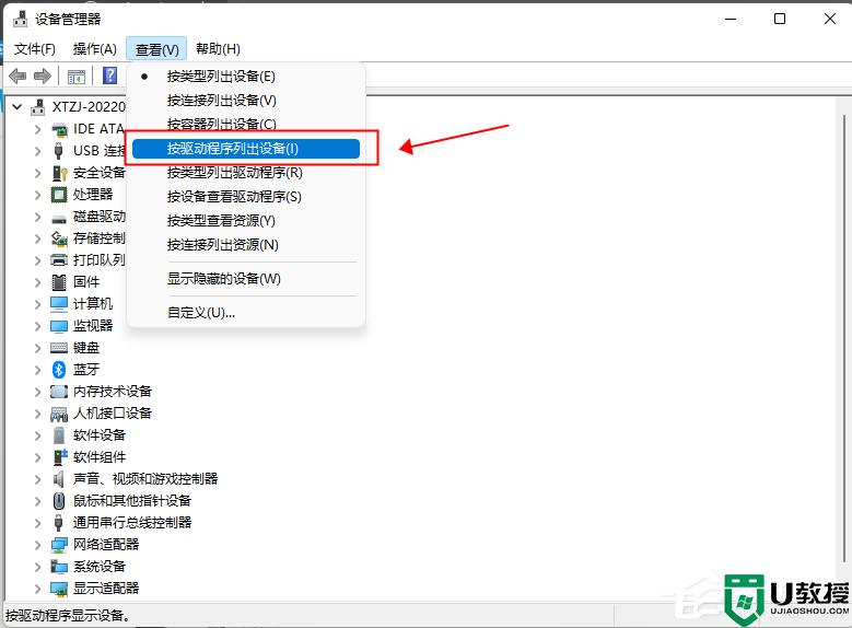 1、计算机管理--设备管理器--点击菜单栏中的查看--按驱动程序列出设备;