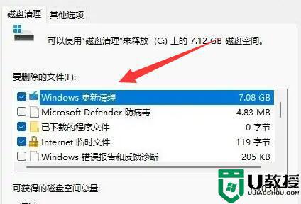 5、打开后,找到“Windows更新清理”,这就是升级包了。