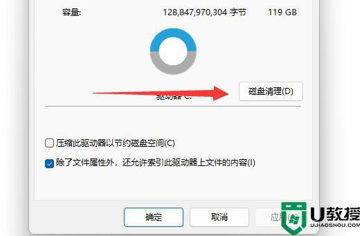 3、然后点击下方“磁盘清理”。