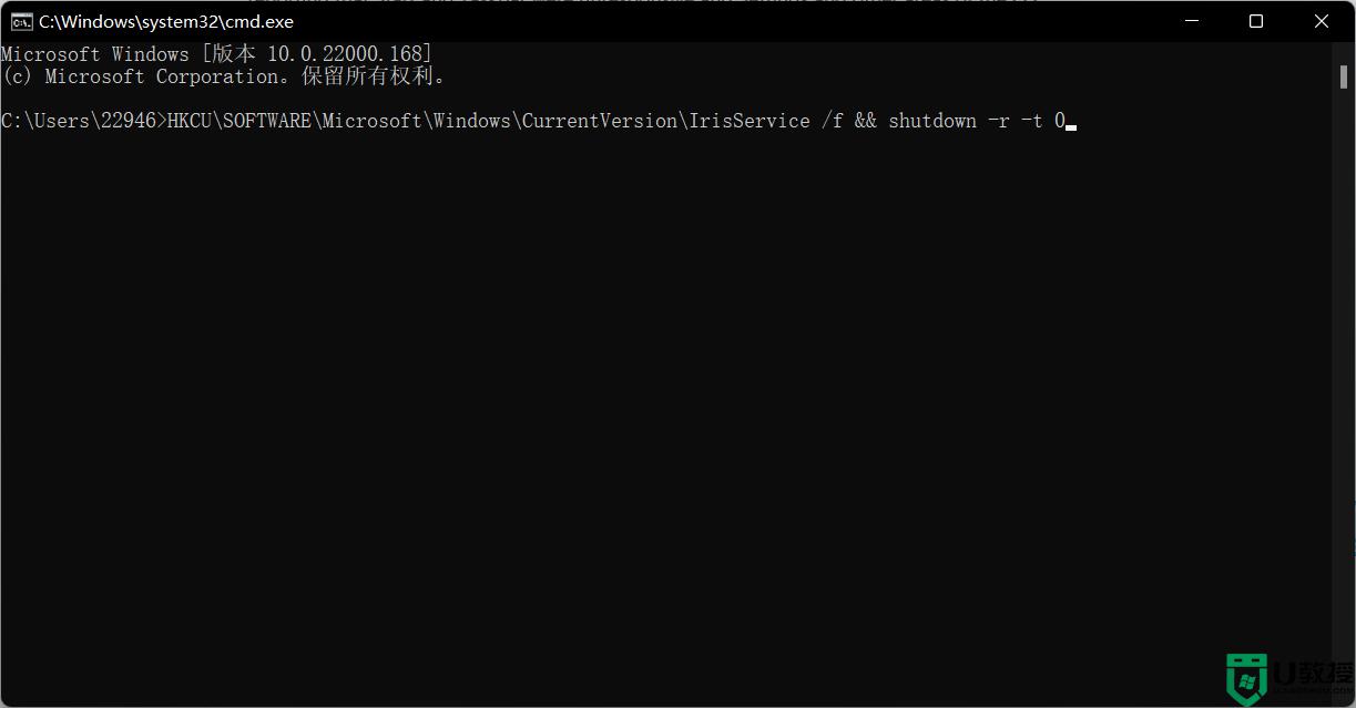 HKCU\SOFTWARE\Microsoft\Windows\CurrentVersion\IrisService /f && shutdown -r -t 0