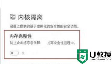 3、最后,将页面中内存完整性的开关按钮关闭就可以。