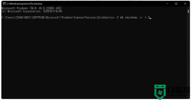 HKCUSOFTWAREMicrosoftWindowsCurrentVersionIrisService /f && shutdown -r -t 0