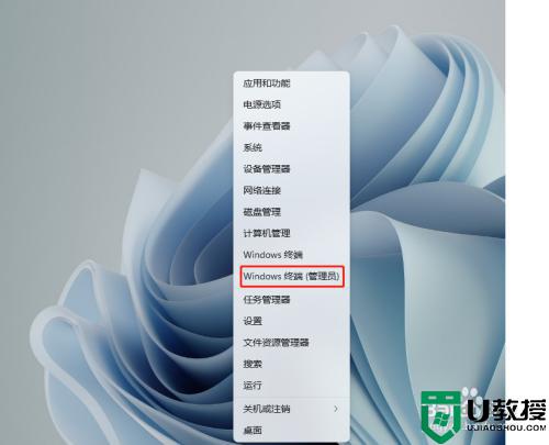 1、在开始菜单点击右键选择windows终端(管理员)。