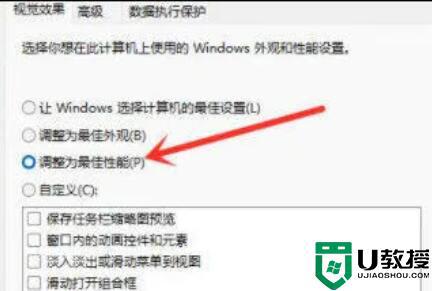 5、然后在视觉效果选项卡下,勾选“调整为最佳性能”即可。