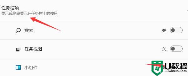 2、然后展开其中的“任务栏项”,在将下方的小组件打开。