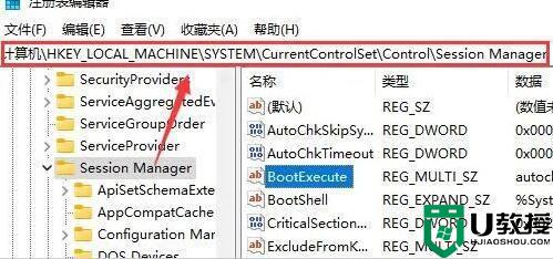 3、在文件处搜索定位计算机HKEY_LOCAL_MACHINESYSTEMCurrentControlSetControlSession Manager位置。
