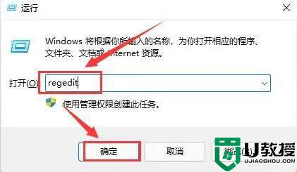 2、输入regedit后点击确定按钮打开注册表编辑器。