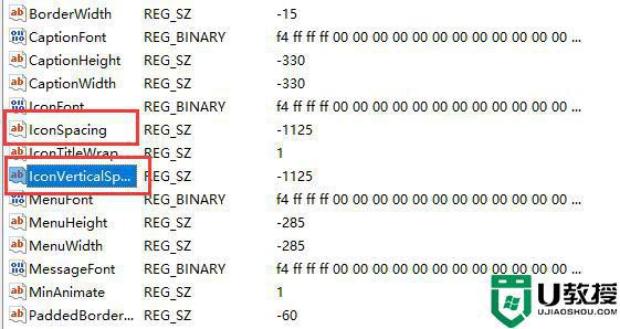 4、进入后打开“lconSpacing”和“IconVerticalSpacing”选项。