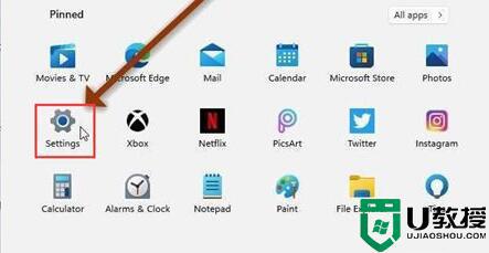 1、首先我们点击任务栏之中的开始菜单,就可以进入“设置”。