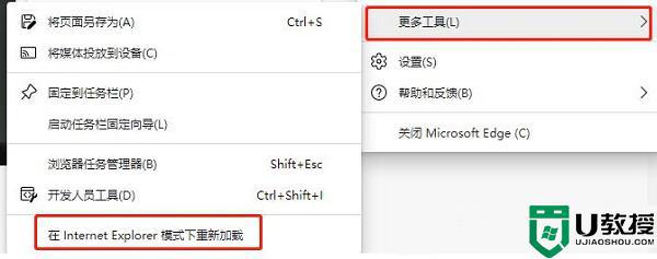 5、然后在其中找到“更多工具”,点击其中的“在internet explorer模式下重新加载”即可。