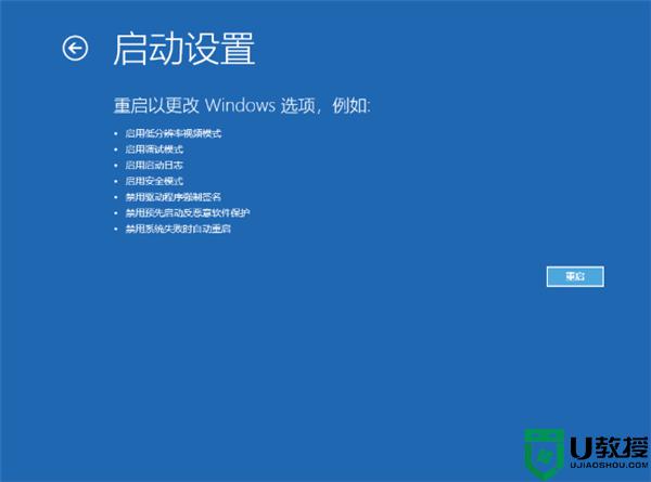 5、在启动设置中,我们直接点击右下角的重启,如图: