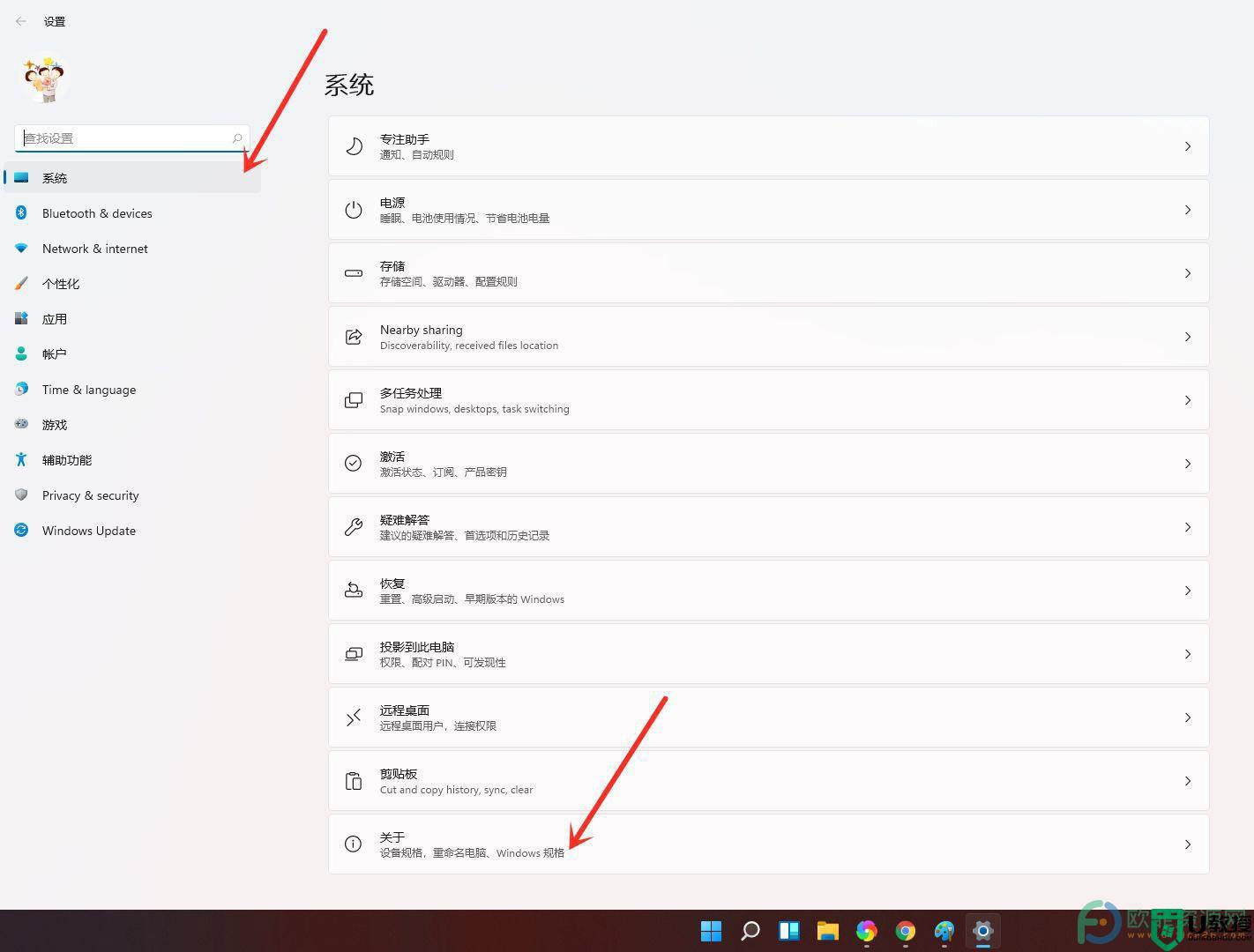 2.我们选择左侧第一个选项系统,在右侧页面上找到关于选项。