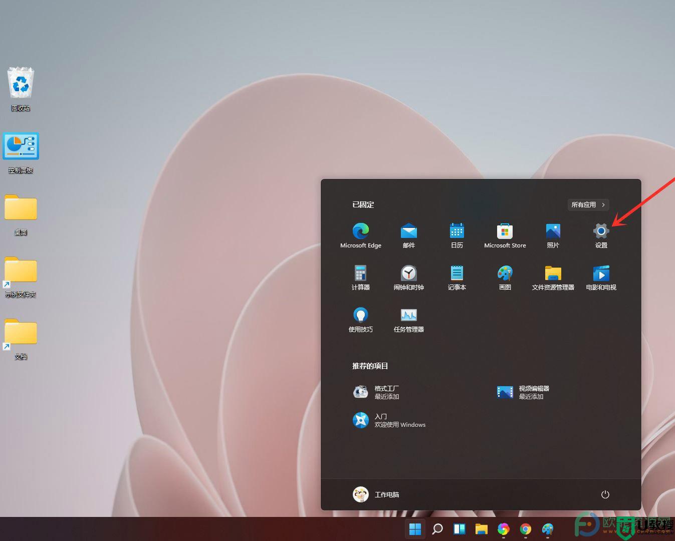 1.一般我们在开始菜单栏中找到设置功能,进入设置页面。