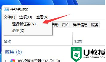 1、按下“ctrl+shift+esc”调出任务管理器,点击左上角“文件”,选择“运行新任务”。
