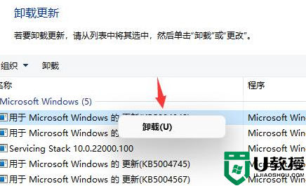 4、在相关设置下方选择“卸载更新”,右键选中KB500430更新,将它“卸载”就可以了。
