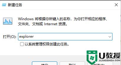 5、新建任务窗口,输入【explorer】命令,按【确定或回车】,即可重新启动Windows 资源管理器。