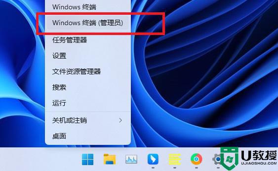 1、首先,按键盘上的【 Win + X 】组合键,或右键点击任务栏上的【Windows开始徽标】,打开的隐藏菜单项中,选择【Windows 终端 (管理员)】;