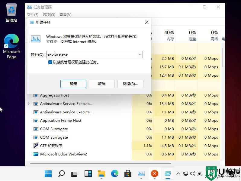 3、接着在其中输入“explorer.exe”再按下回车确定就可以了。