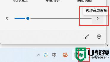 2、点击右下角的声音图标,再点击其中图示位置的箭头。